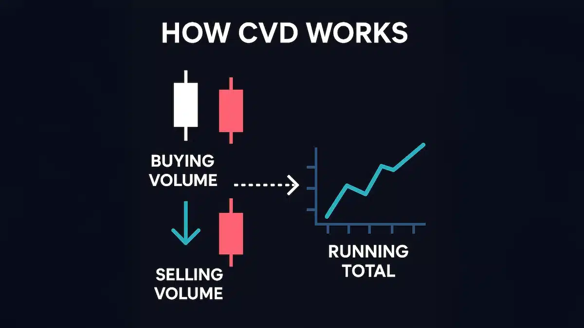 - Bullish Divergence: The price makes a lower low, but the CVD line makes a higher low. Aggressive selling is drying up, and a reversal to the upside is imminent.